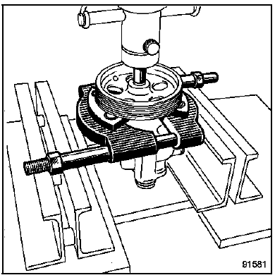 Emmancher la poulie, outil Dir. 1083-01 jusqu'à l'obtention de la cote relevée lors de la dépose (graisser abondamment le filetage et l'appui sur la poulie).